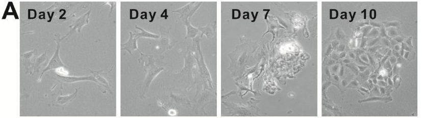 Células progenitoras cardiomiogénicas primárias derivadas de tecidos cardíacos de embriões de ratinho E15.5. (A) Morfologia dos progenitores cardiomiogénicos primários isolados em cultura celular. São mostrados conjuntos representativos de células. As células primárias mostraram manter o batimento rítmico em cultura. (In doi: 10.7150/ijms.6639)